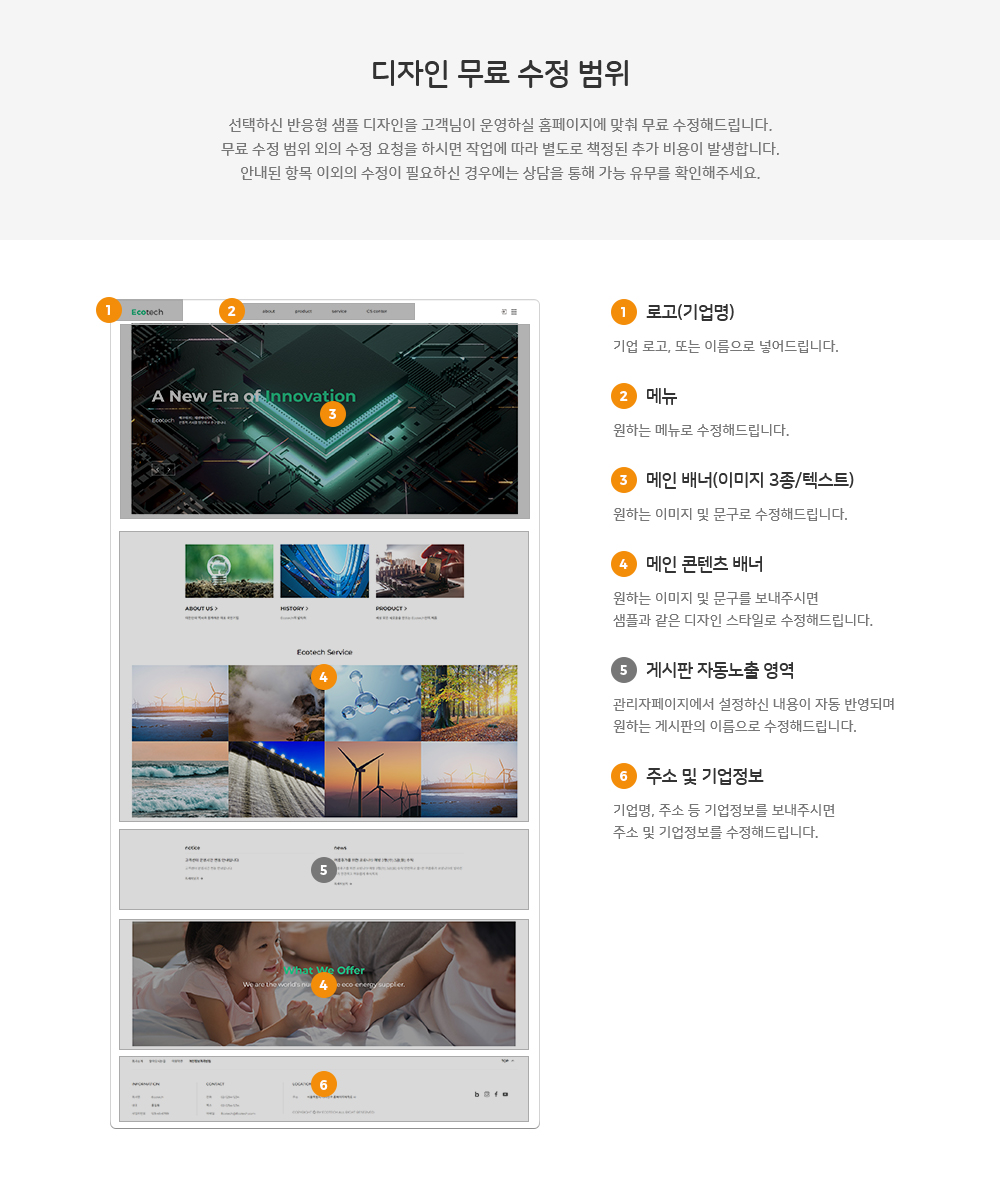 - 메인페이지 1P / 디자인 페이지 7P / 게시판 최대 10P / 회원가입/ 팝업관리 / SEO 검색 최적화