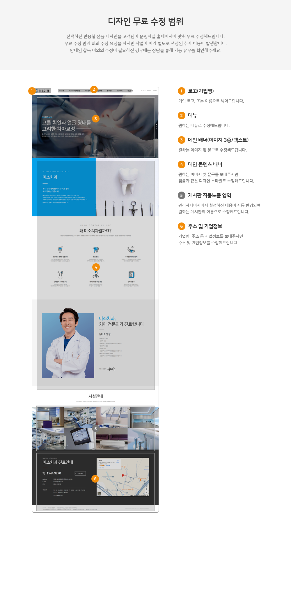 - 메인페이지 1P / 디자인 페이지 7P / 게시판 최대 10P / 회원가입/ 팝업관리 / SEO 검색 최적화
