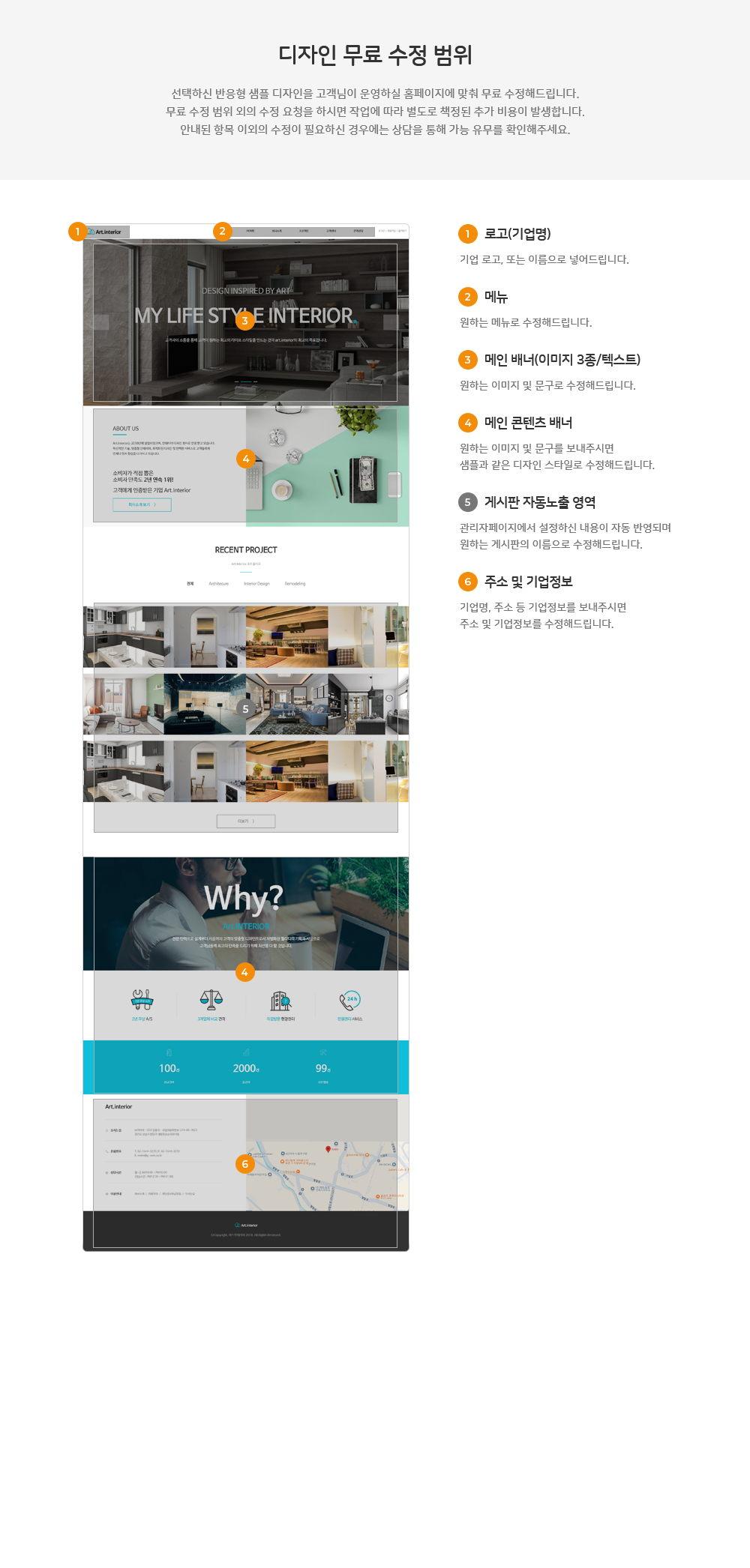 - 메인페이지 1P / 디자인 페이지 7P / 게시판 최대 10P / 회원가입/ 팝업관리 / SEO 검색 최적화