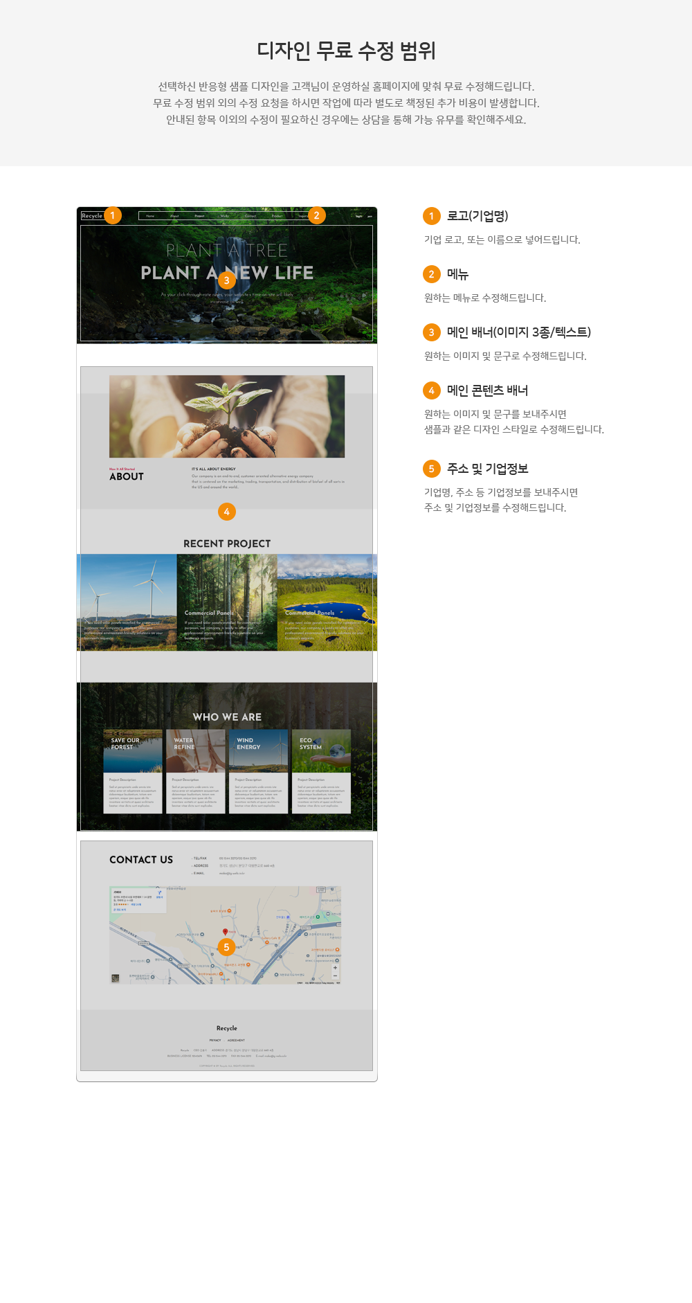 - 메인페이지 1P / 디자인 페이지 7P / 게시판 최대 10P / 회원가입/ 팝업관리 / SEO 검색 최적화