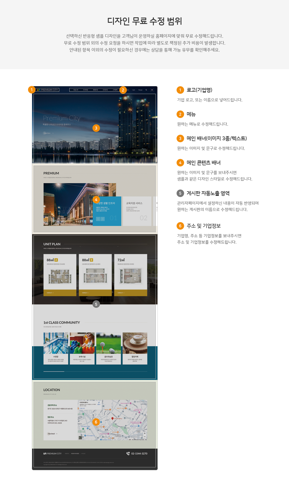 - 메인페이지 1P / 디자인 페이지 7P / 게시판 최대 10P / 회원가입/ 팝업관리 / SEO 검색 최적화